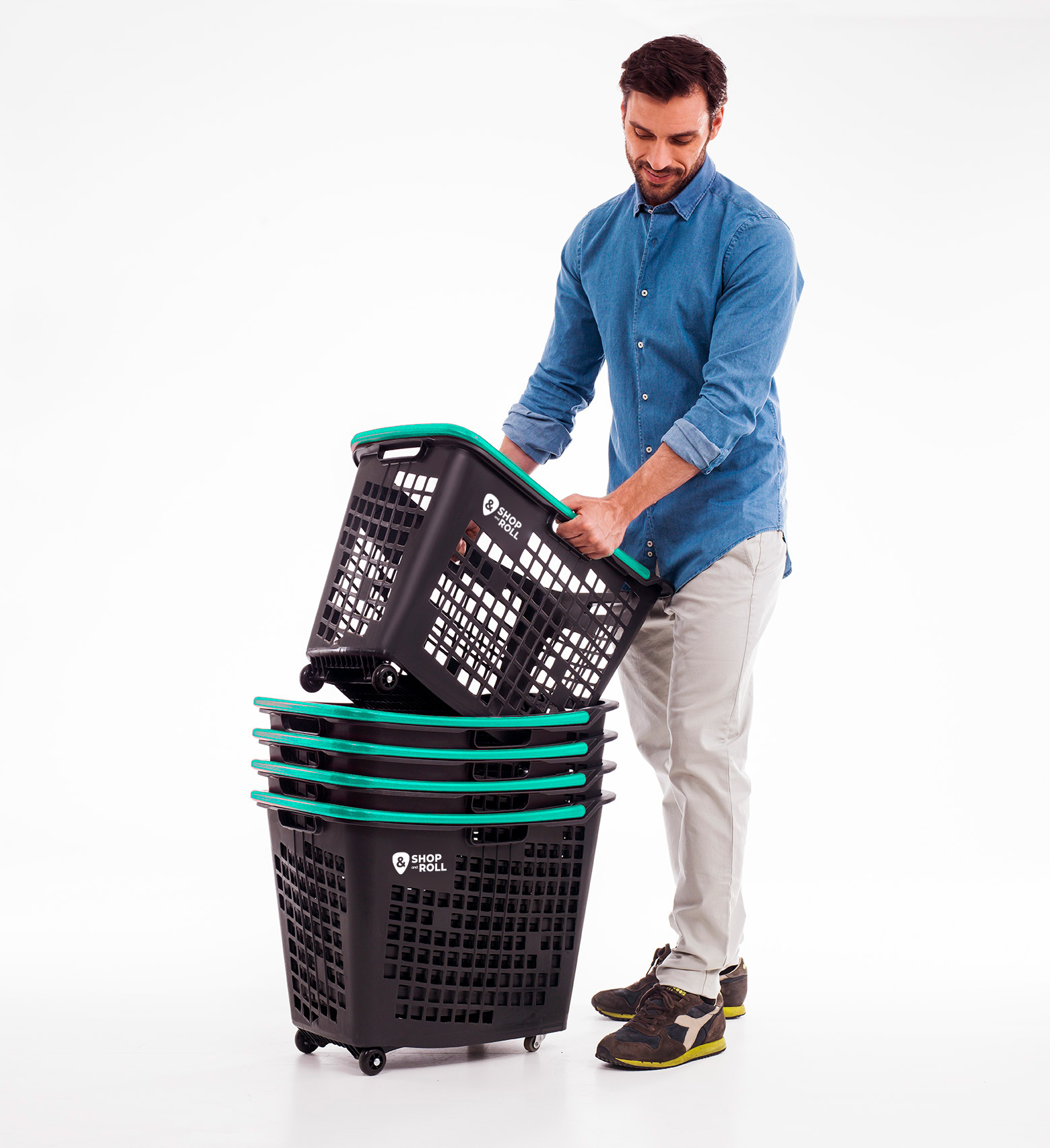 65 Literes kiváló minőségű gurulós bevásárlókosarak.